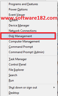 Tekan lambang Windows + huruf X pada Keyboard --> pilih Disk Management